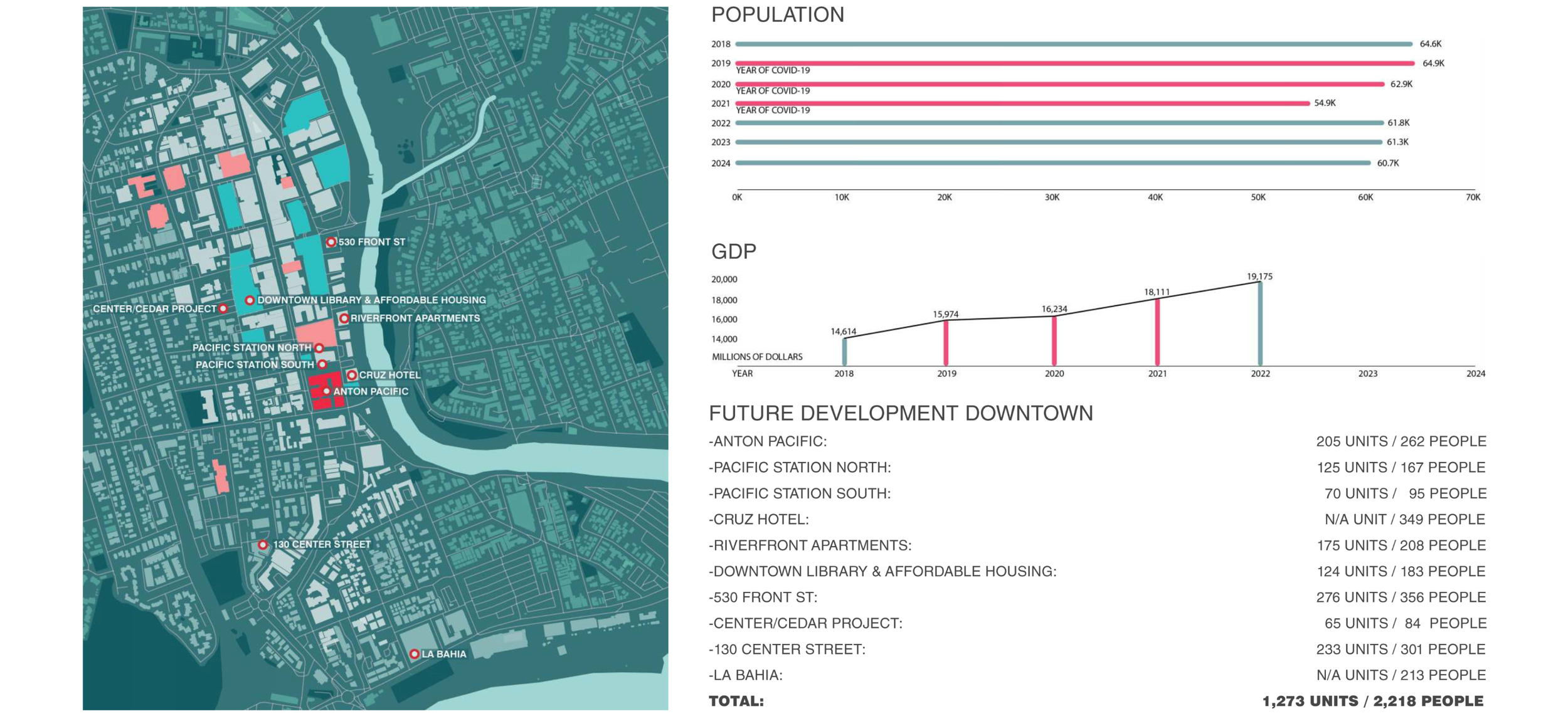 The work began with a close look at Anton Pacific’s location within downtown Santa Cruz. Proximity to major anchors, walkability, transit connections, and surrounding commercial activity helped define the project’s retail potential and shape its leasing story from the outset.